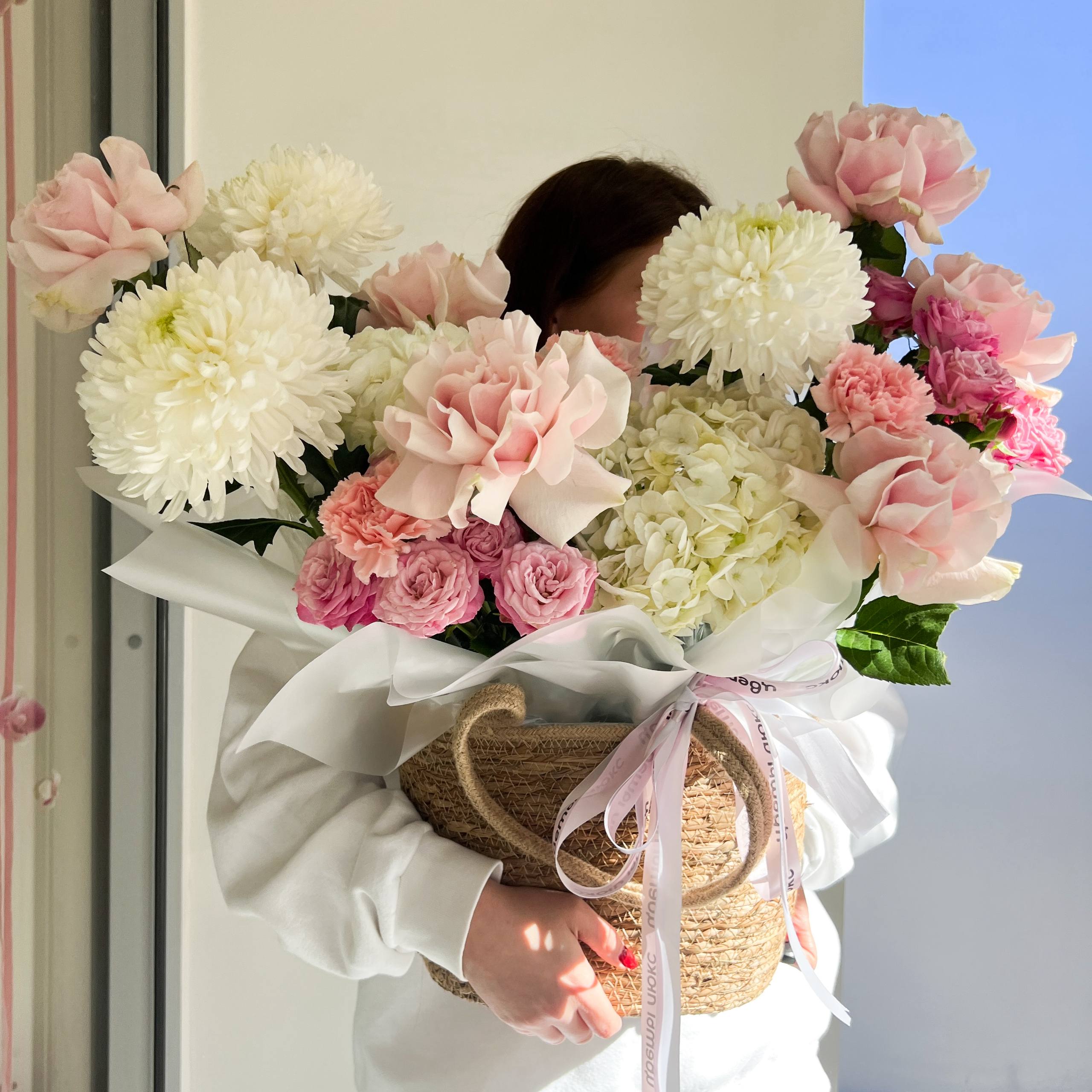 Выбирай пастельные оттенки и простую, элегантную композицию. Хороший вариант — кустовые розы, ранункулюсы или пионовидные розы в нейтральных тонах. При возможности проконсультируйся с флористом и опиши повод и возраст получателя.