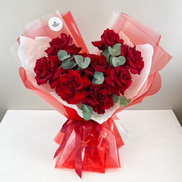Букет в форме сердца из пылких алых роз. Такой подарок мечтает получить каждая!