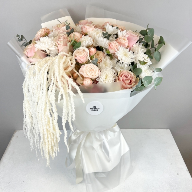 Эффектный Букет Роскошь воплощает атмосферу гламура и моды. Нежные розовые оттенки и оригинальный дизайн делают его идеальным выбором для тех, кто хочет подарить радость и подчеркнуть стиль.