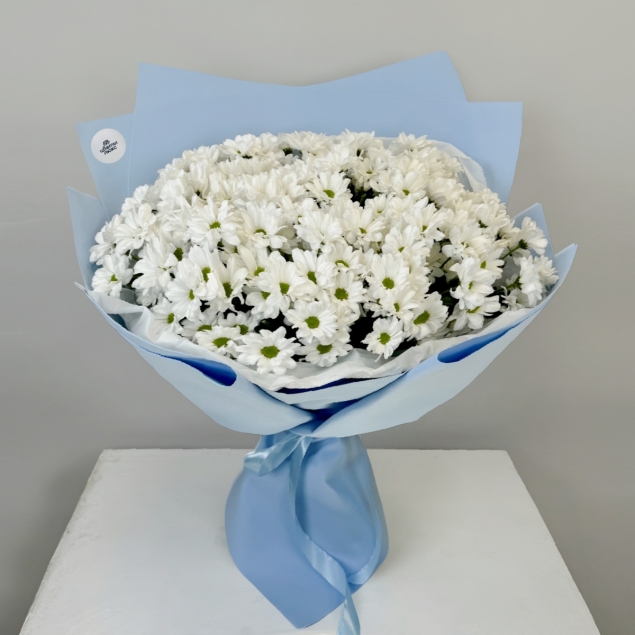 Букет «Гармония» — это воплощение изысканности и совершенства, созданное для того, чтобы принести в жизнь покой и умиротворение. В его основе — 25 пышных белых кустовых хризантем, каждая из которых раскрывается в нежное, воздушное облако многочисленных лепестков. Их белоснежная красота создает идеально сбалансированную и объемную композицию, которая мгновенно наполняет пространство ощущением чистоты, спокойствия и совершенной гармонии. Белые хризантемы символизируют искренность, благородство и долголетие. Букет тщательно упакован в прозрачную пленку и украшен двумя изящными лентами, что подчеркивает его элегантность и продуманность. «Гармония» станет идеальным подарком для тех, кому вы желаете спокойствия, равновесия и красоты, а также прекрасным способом выразить глубокое уважение и самые светлые чувства.