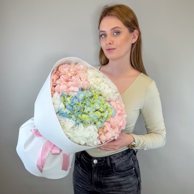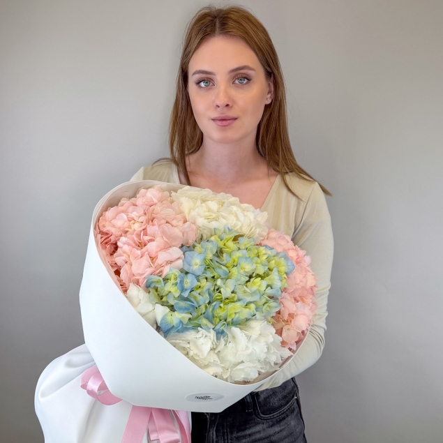 Букет «Шелковый путь», состоящий из пяти великолепных, крупных гортензий, – это настоящее путешествие в мир роскоши и утонченной красоты. Их пышные соцветия, возможно, богатых, насыщенных или смешанных оттенков (например, винных, пурпурных, антикварно-розовых или кремовых), напоминают переливы драгоценного шелка, символизируя изысканность, богатство впечатлений и красоту дальних стран. Элегантная упаковка и две атласные ленты гармонично подчеркивают особый статус этого впечатляющего подарка.
