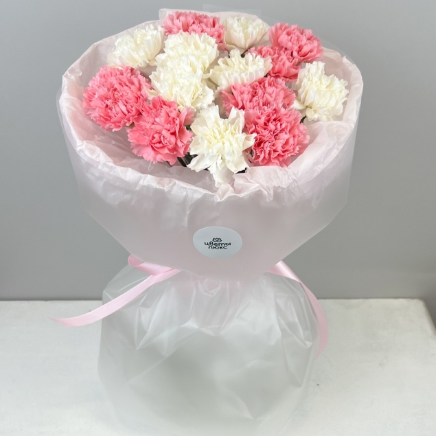 Вы можете купить «Букет "Розовый бриз" из 15 пудровых гвоздик» в Самаре с быстрой доставкой по городу и области.