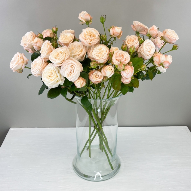 При правильном уходе кустовые розы Бомбастик сохраняют форму бутонов, свежесть лепестков и декоративность на протяжении всего срока вазостойкости, создавая эффектный и пышный букет.