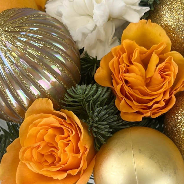 Перед вами “Новогоднее настроение” - уникальный букет, олицетворяющий собой дух праздника и радости. Это истинное произведение искусства, созданное нашими талантливыми флористами, которое станет ярким акцентом вашего интерьера и незабываемым подарком для ваших близких.