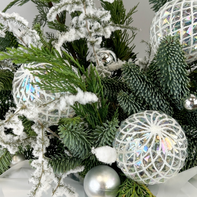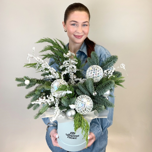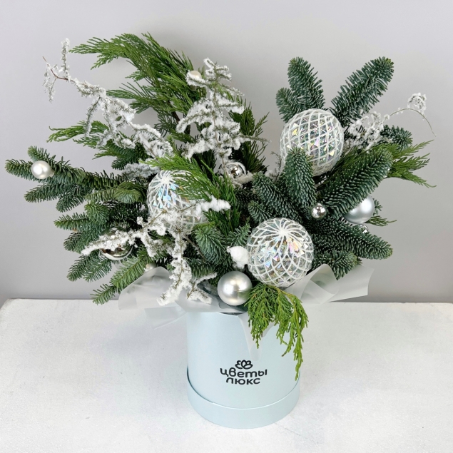 Композиция в новогодней гамме подарит атмосферу приближающегося праздника. Идеален для зимы.
