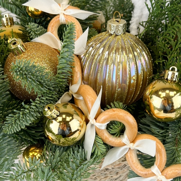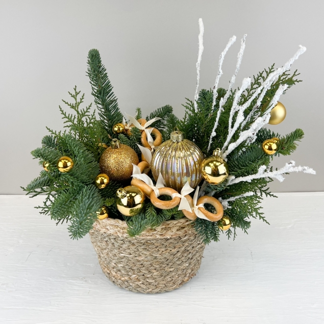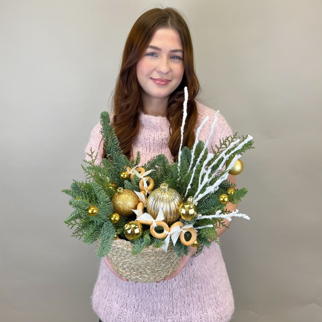 Композиция в яркой новогодней гамме подарит атмосферу приближающегося праздника. Идеально для зимы.