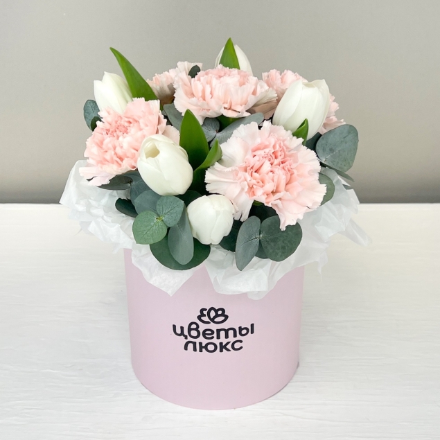 Букет «Сад нимф» — это изысканная цветочная композиция в коробке, наполненная лёгкостью, природной гармонией и утончённой романтикой. В его сердце — 5 белых тюльпанов и 5 розовых гвоздик: белые тюльпаны символизируют чистоту и нежность, а розовые гвоздики добавляют мягкость оттенков, теплоту чувств и лёгкий шарм. Дополняет ансамбль эвкалипт Цинерея, чья серебристо-зелёная листва придаёт композиции свежесть, объём и естественную воздушность. Сочетание белых и розовых тонов с прохладной зеленью создаёт ощущение цветущего уголка, будто скрытого сада, где царит спокойствие и вдохновение. Композиция аккуратно размещена в стильной коробке, что делает её не только красивым, но и удобным подарком. «Сад нимф» — идеальный выбор для тех, кто хочет подарить нежность, эстетику и атмосферу сказочной лёгкости в одном утончённом жесте.
