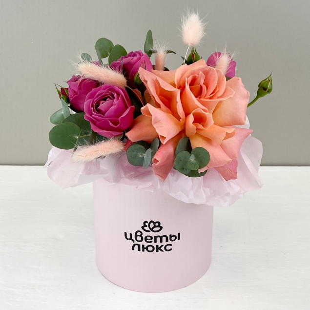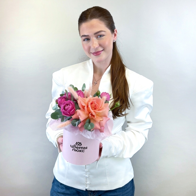 Огонек души Розовая и пионовидная роза в шляпной коробке