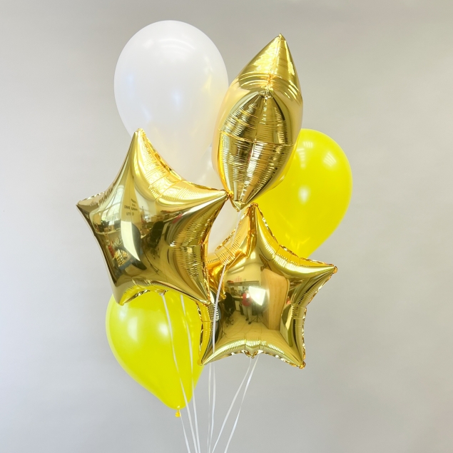 Стильная связка воздушных шаров выполненная в серебряном и золотых цветах. Идеальное дополнение к вашему букету!