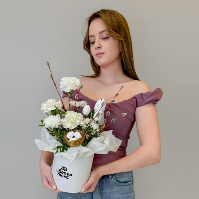 Белоснежная композиция в качестве подарка к Светлой Пасхе понравится Вашим близким!